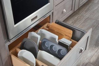 Easily see and access oversized cookie sheets, trays and pans.