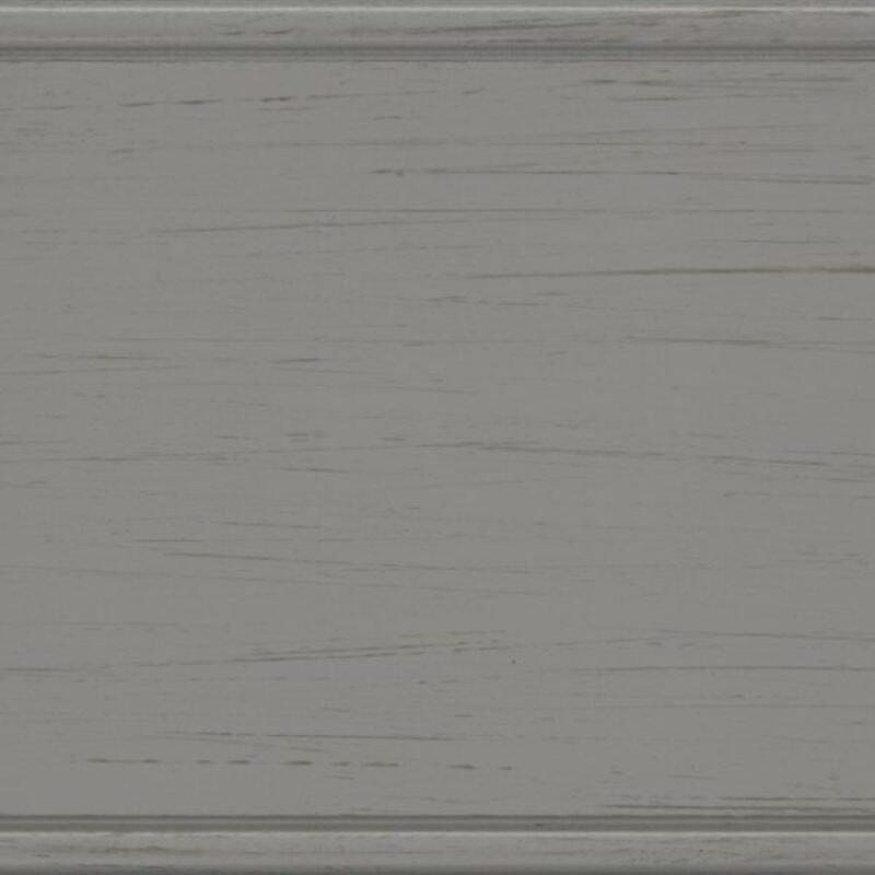 A silky, light gray paint with a cool, opaque finish, enhanced by our Dry Brush technique in deep Graphite.