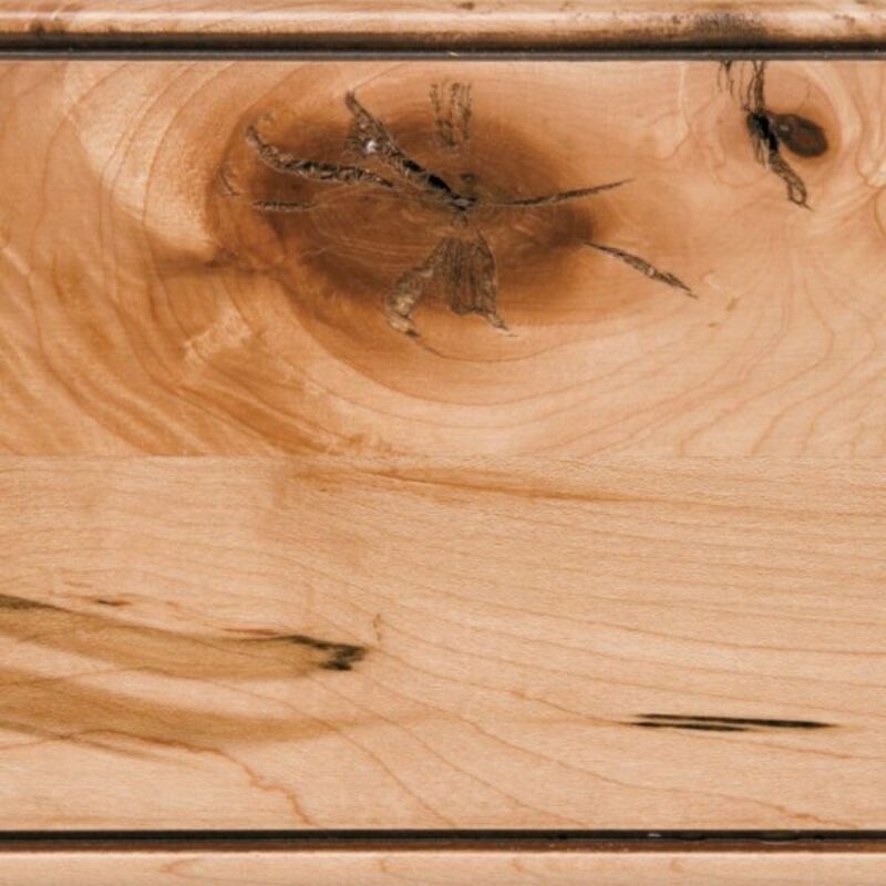 A clear finish that enhances the wood’s natural beauty and reveals its true color, enhanced by a Burnt Sienna glaze with hand-applied highlights in the recesses.