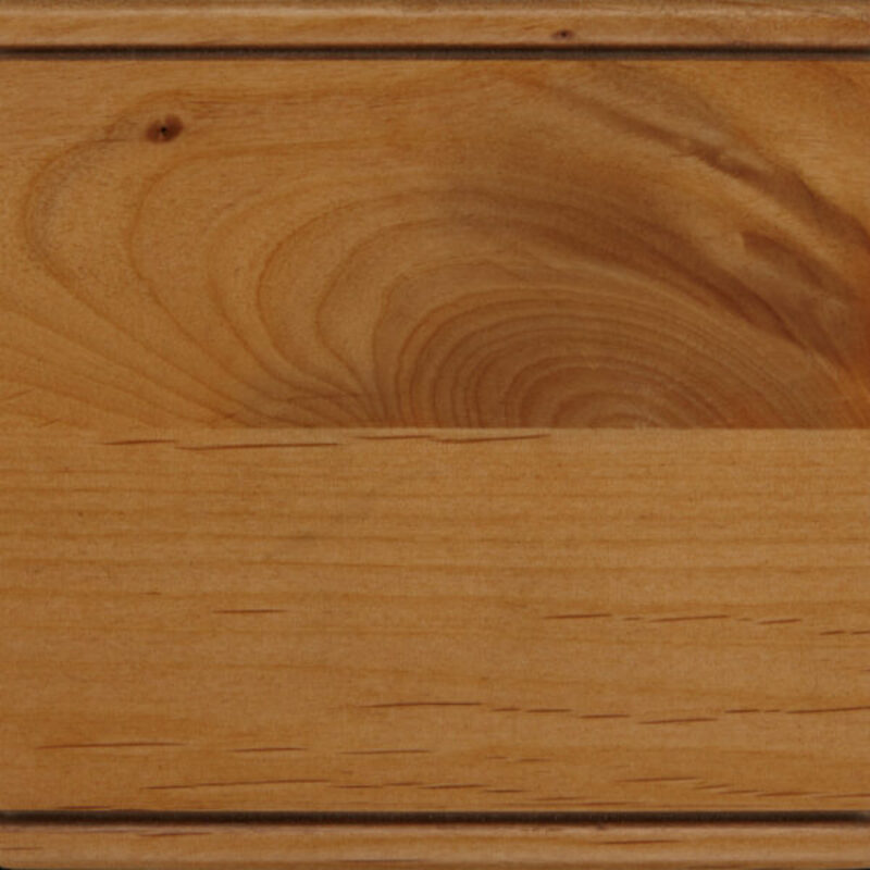 A clear finish that enhances the wood’s natural beauty and reveals its true color, complemented by Burnt Sienna hand-brushed detailing that creates defined accent lines.