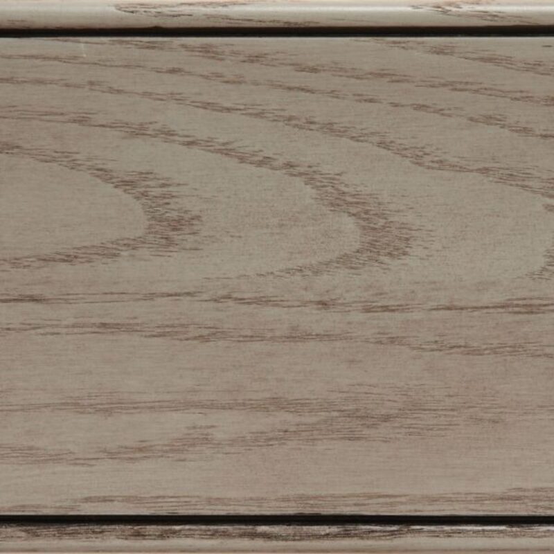 A light-gray base with a charcoal overlay creates a warm gray tone, highlighting the wood’s natural character, complemented by Ebony hand-brushed detailing for defined accent lines.