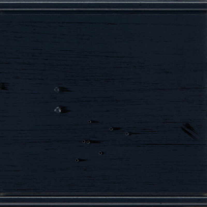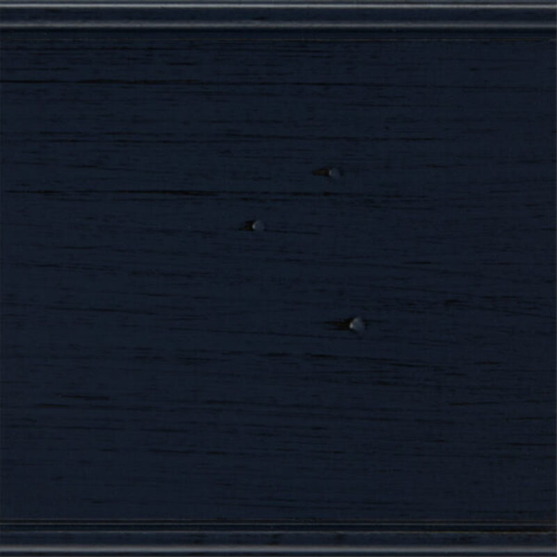 A rich, moody blue base with hand-applied accents in deep gray to black, adding dramatic depth and character.