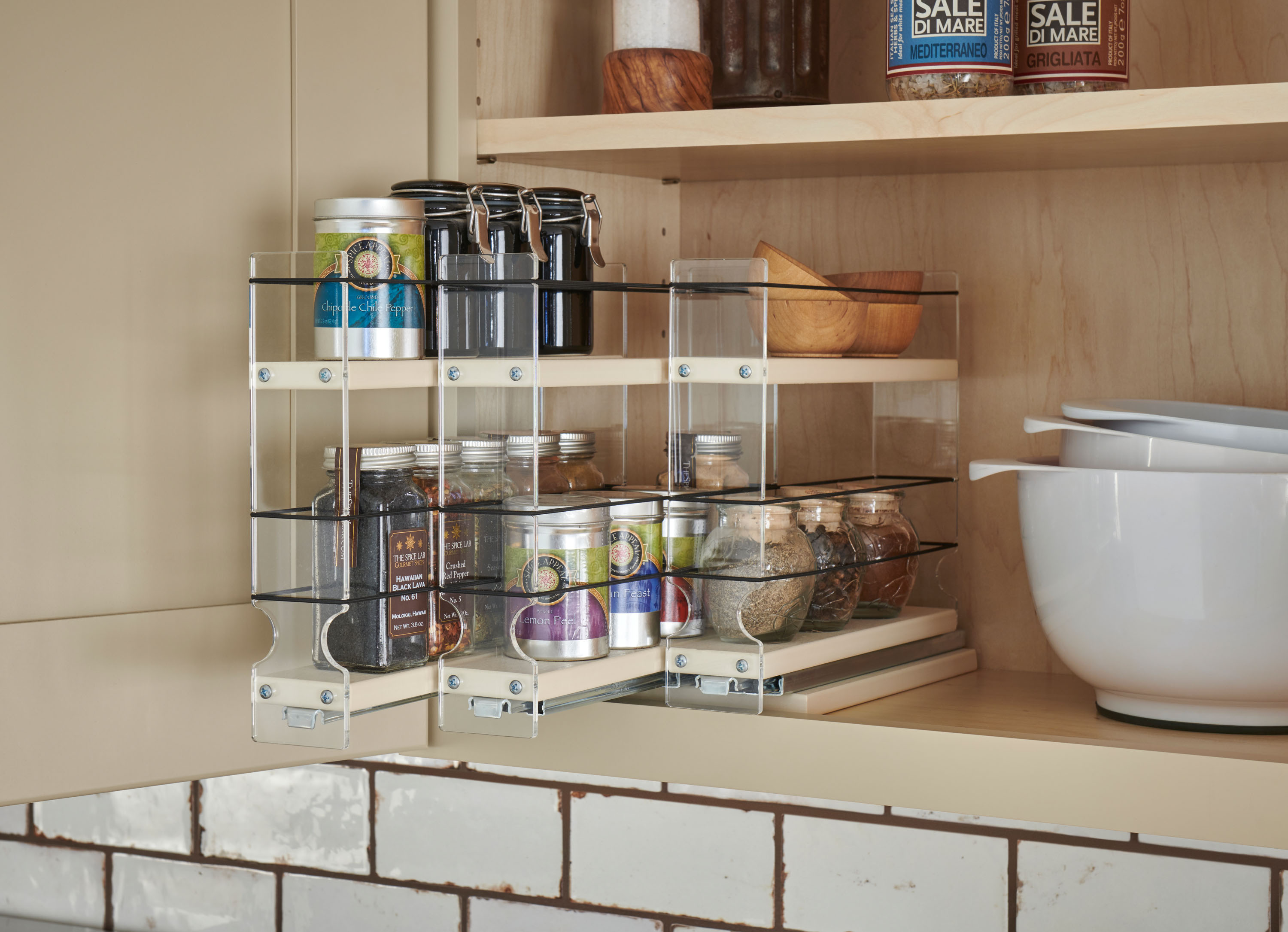Give your wall kitchen cabinets the upper hand with this tiered spice rack organizer.