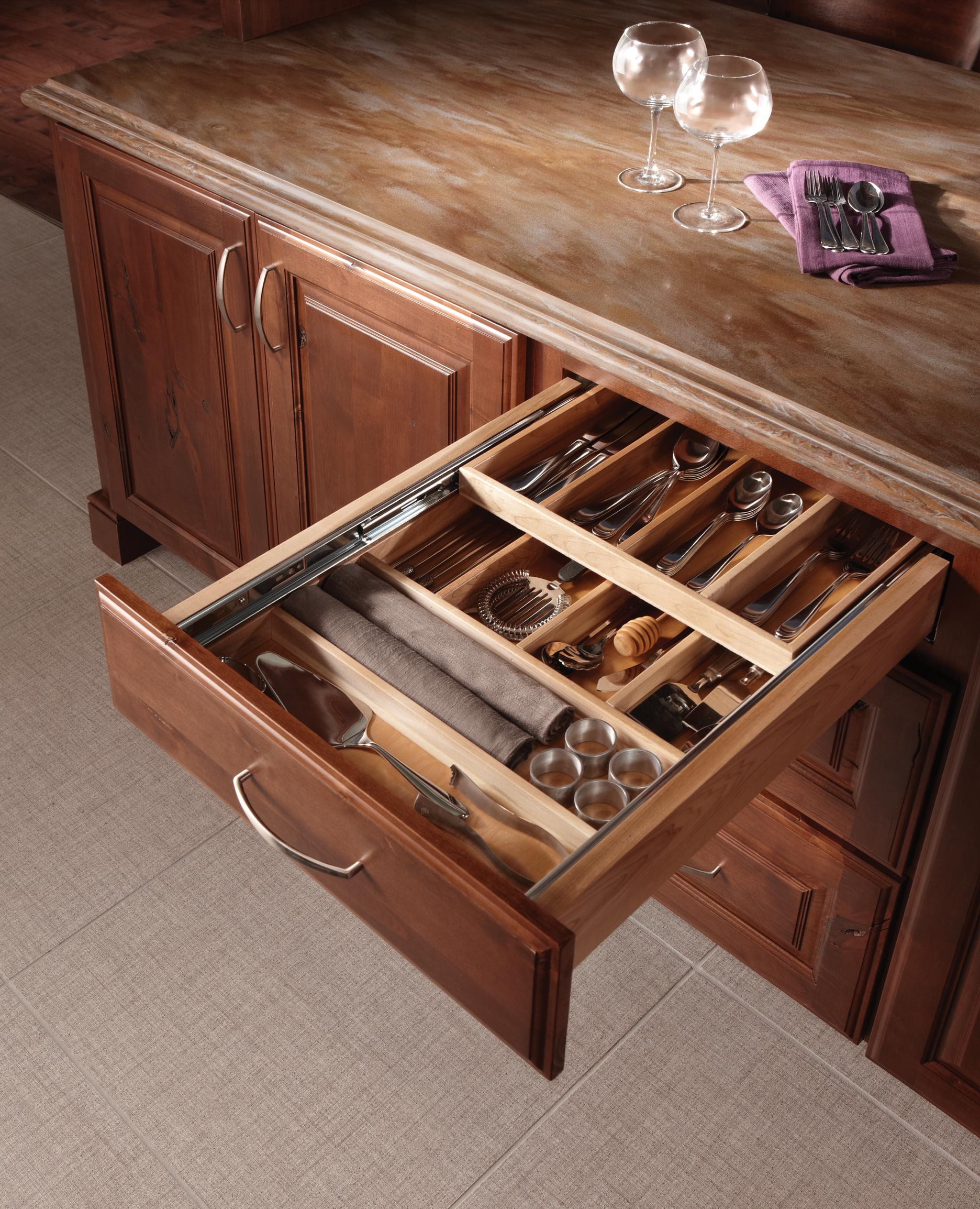 Two-tiers provide storage for frequently used items on the top and more seldom-use items beneath.