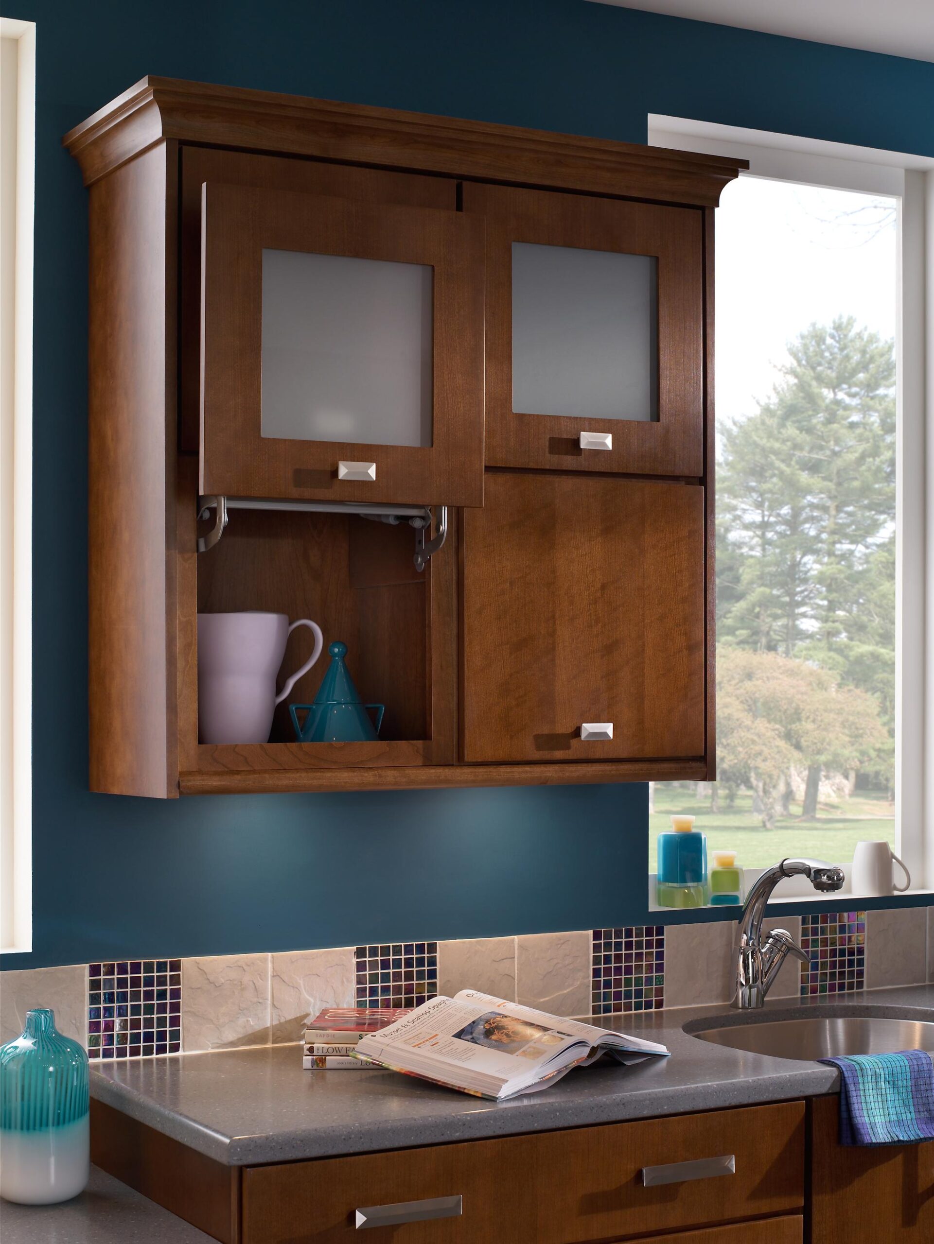Doors lift-up versus swinging-out for unobstructed views to the left and right of this wall cabinet!