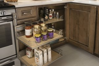 With one quick motion, see all the contents of your cabinet with double-tiered, swing-out shelves.